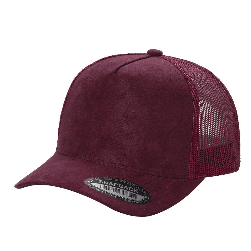 A Suede Mesh Trucker Hat combines the classic trucker style with an upscale twist. This cap features a distinctive five-panel design, with the front panels crafted from rich, textured suede for a sophisticated look. The back of the hat is constructed from breathable mesh, ensuring comfort and ventilation. SUM