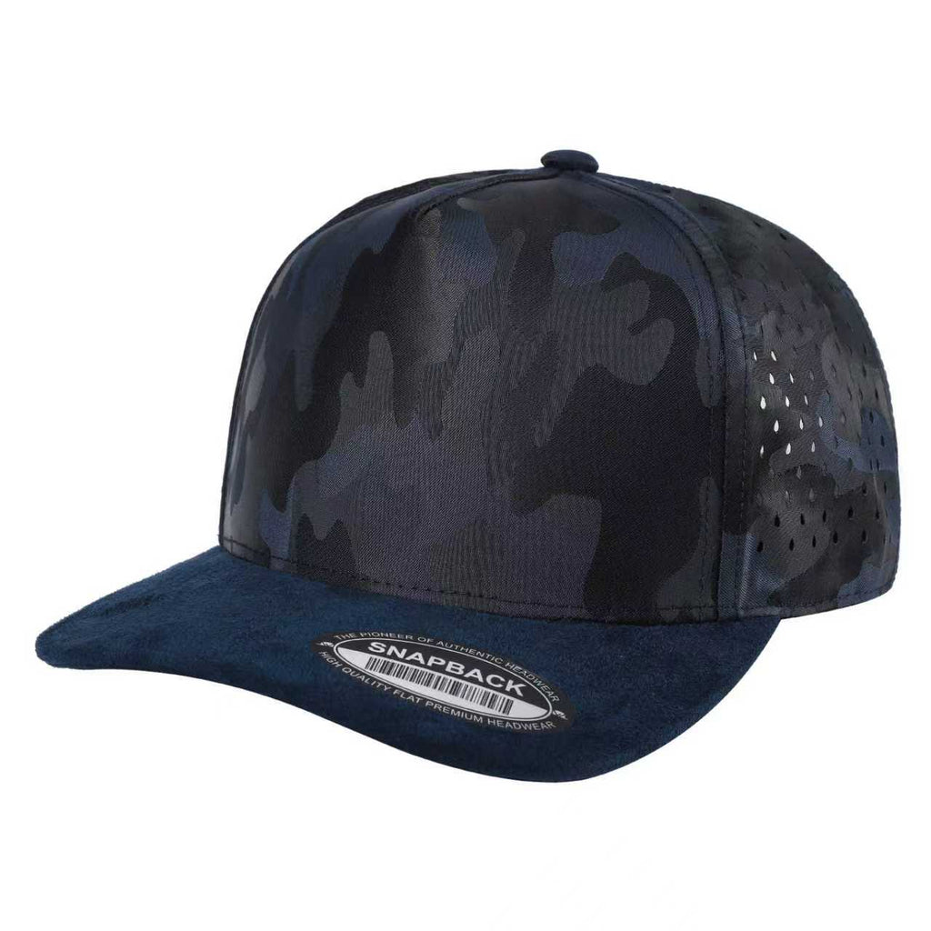 A Camo Suede Laser Snapback is a premium headwear style that blends modern construction, bold design, and advanced materials. Here's a detailed description: